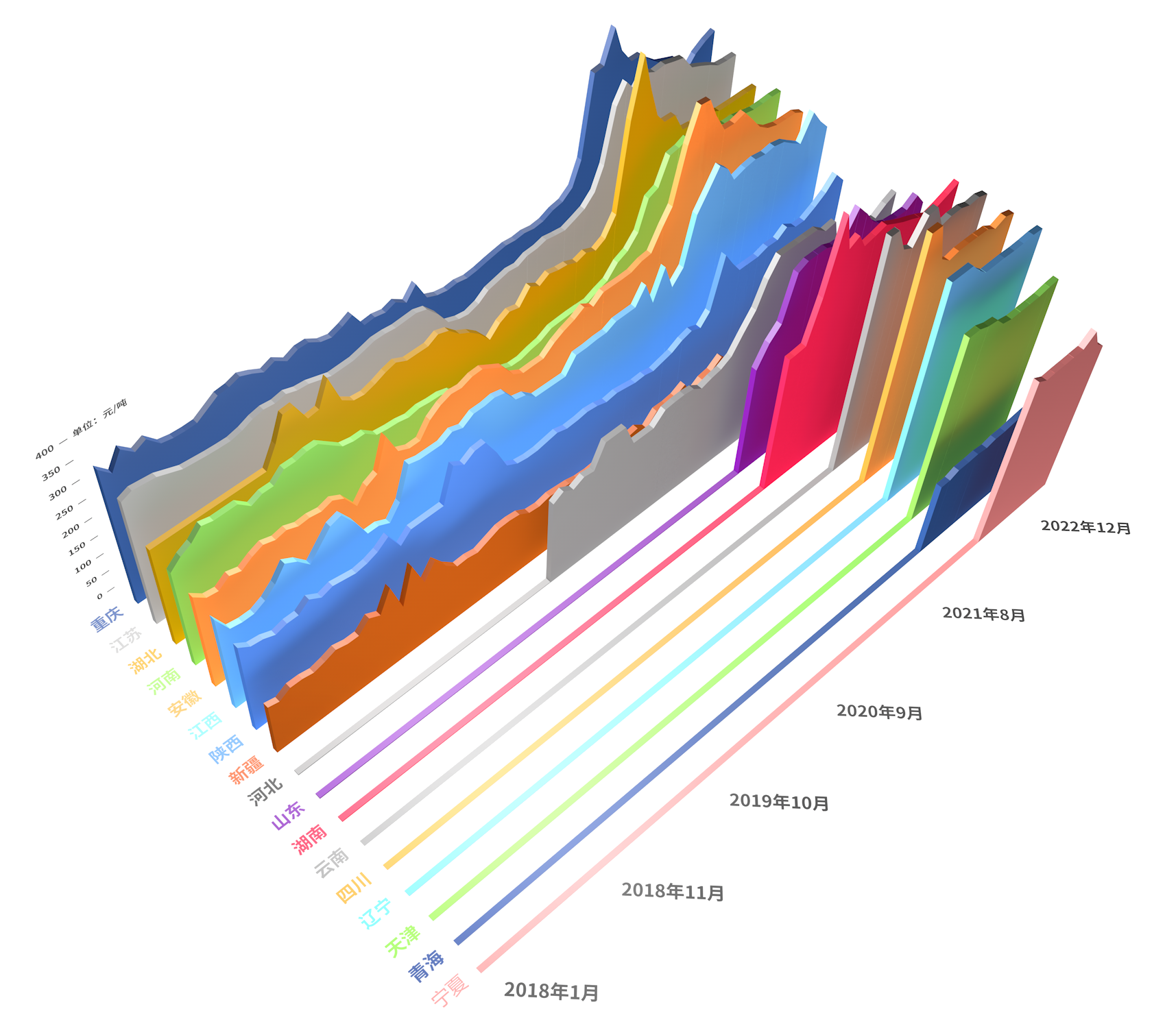 分区域来看,2022年12月,湖南、重庆、江苏、天津、河北、青海两碱工业盐出厂价格较2022年11月上涨;云南、四川、河南、江西、安徽、山东、宁夏、陕西、新疆两碱工业盐出厂价格较2022年11月下跌;辽宁、湖北两碱工业盐出厂价格较2022年11月持平。