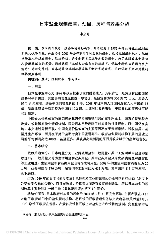 ——李宏舟:日本盐业规制改革:动因、历程与效果分析