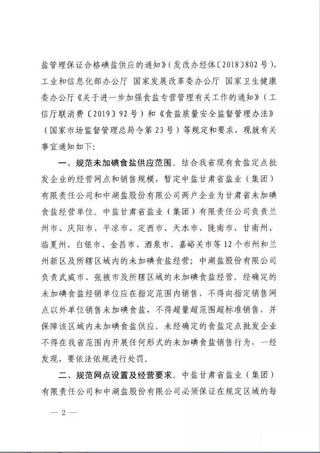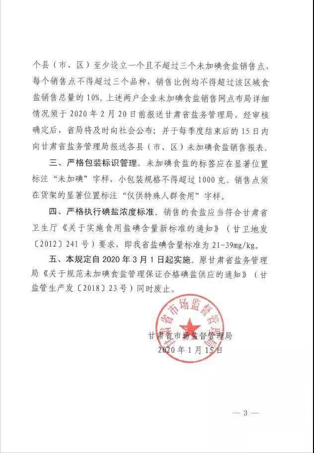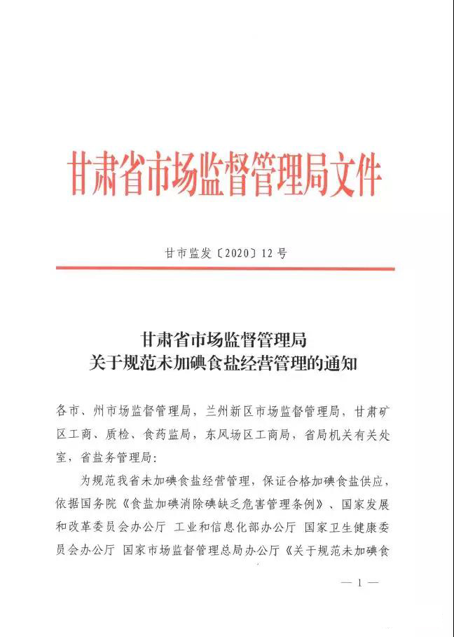甘肃省市场监管局关于规范未加碘食盐经营管理的通知