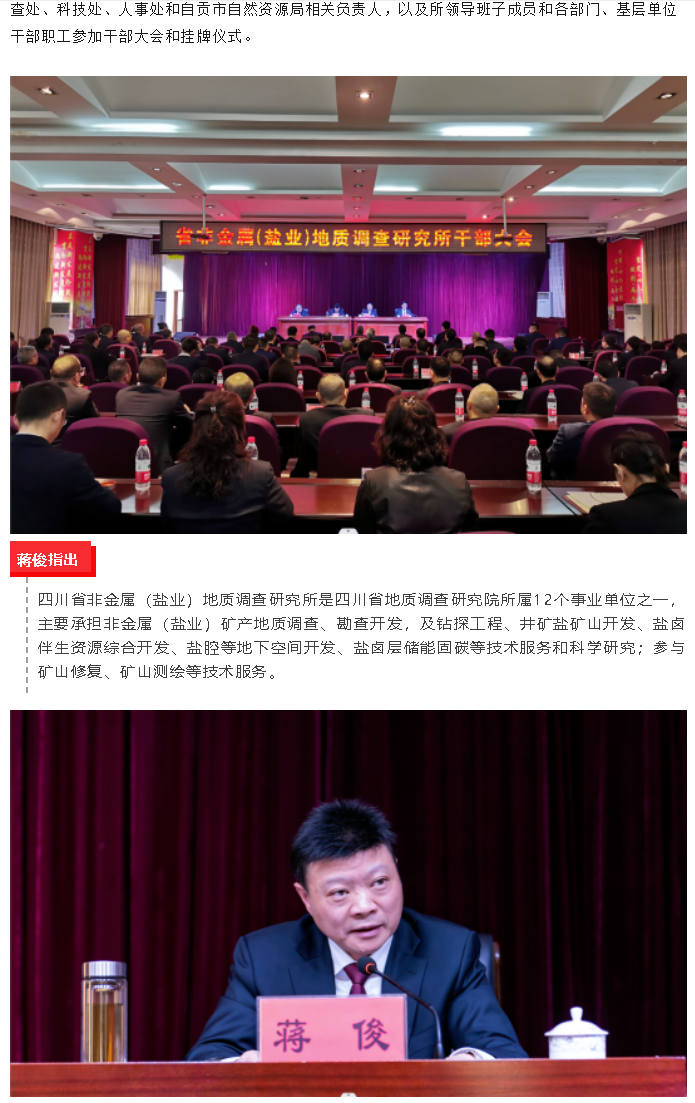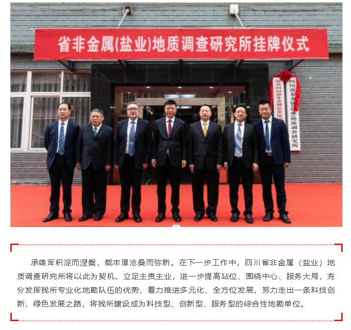 由四川省非金属(盐业)地质调查研究所申请立项并主持制定的行业标准《岩盐钻井水溶开采矿山地质工作规范》DZ/T0434-2023,于2023年4月19日由自然资源部正式发布,将于2023年8月1日起正式实施。