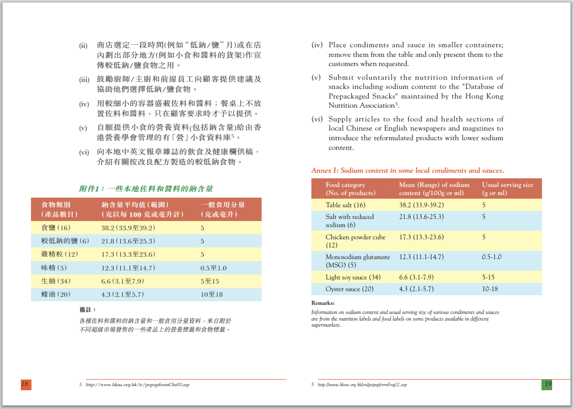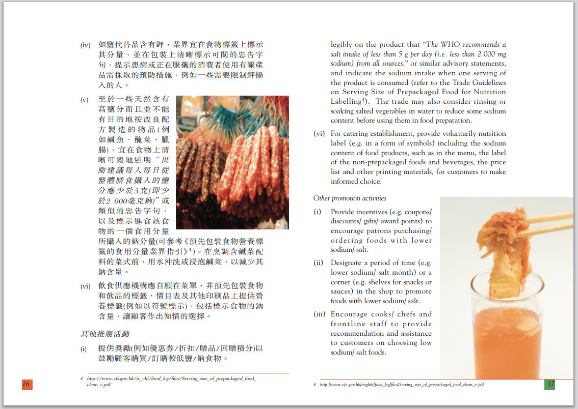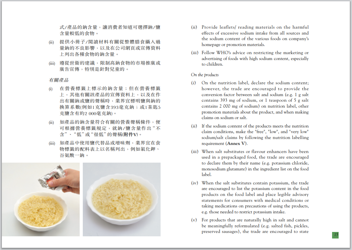 降低食物中钠含量的业界指南-香港特区政府食物环境卫生署食物安全中心