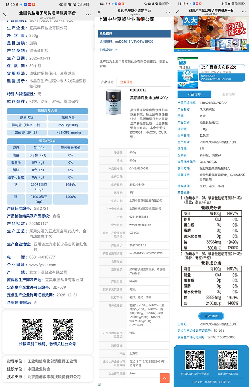 (三)国家卫生健康委会同国家市场监督管理总局近期发布食品安全国家标准、工信部近期发布与食盐有关行业标准,以及中盐协会推进食盐电子追溯体系建设工作有关措施