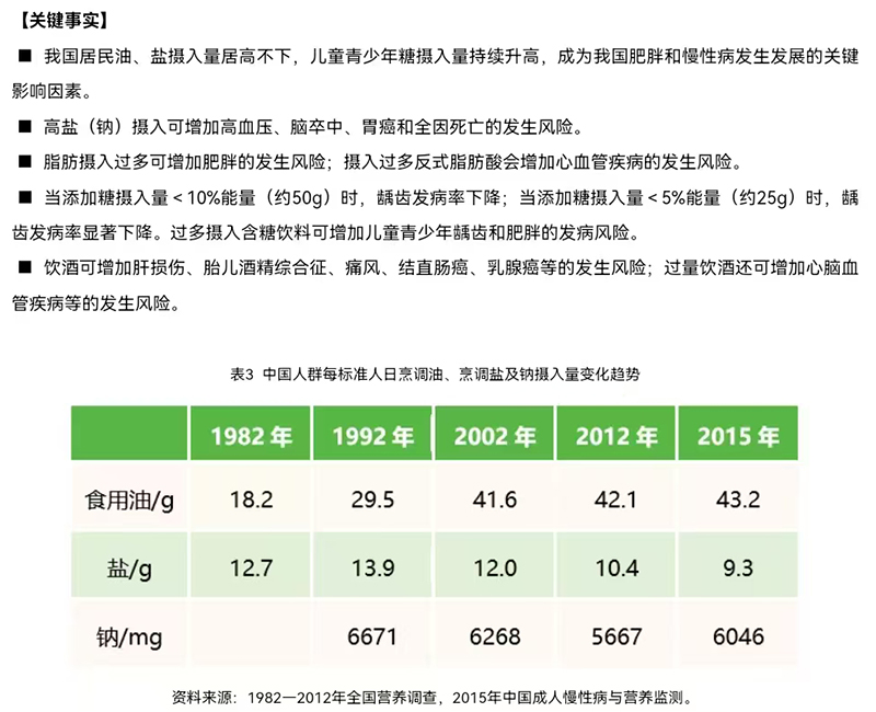 儿童青少年应避免过量摄入盐油糖。 推荐成年人每天摄入食盐不超过5g。 ●国务院《食盐加碘消除碘缺乏危害管理条例》载明:碘缺乏危害,是指由于环境缺碘、公民摄碘不足所引起的地方性甲状腺肿、地方性克汀病和对儿童智力发育的潜在性损伤。国家对消除碘缺乏危害,采取长期供应加碘食盐为主的综合防治措施。 |