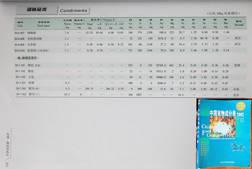 1、钠营养成分含量的计算分析。例举营养成分表依据GB28050-2025的6.4收集加碘食用盐中营养素的营养成份信息,使用中国疾病预防控制中心营养与食品安全所编著的《中国食物成分表(2002)》P210-211调味品类-精盐数据,能量:0,脂肪:—,蛋白质:—,碳水化合物:0,钠:39311mg。