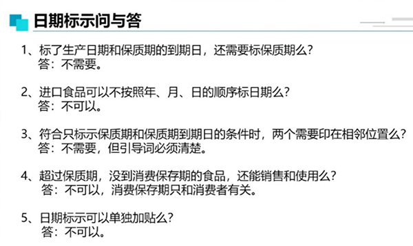 三是解决食品日期“不易算”问题。《标识办法》规定应当在预包装食品标签上按照年、月、日的顺序标注保质期到期日等食品安全国家标准规定的强制标示事项,方便消费者直接知晓食品的可食用期限,无需另行计算。