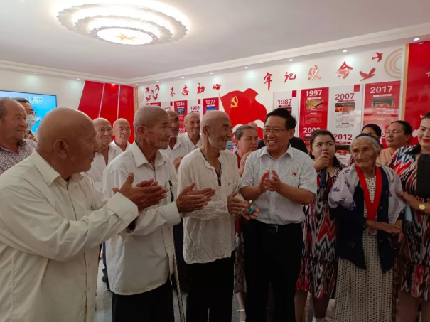 曲连东书记强调,近年来,中盐新疆公司驻岳普湖县“访惠聚”工作队在中盐新疆公司党委的大力支持下,通过“访惠聚”驻村工作队的努力,各项工作取得了长足进步,村容村貌发生了翻天覆地的变化,村民生活水平得到了很大提高,摘掉了深度贫困村的帽子,在全县驻村工作队中发挥了示范引领作用。此次“访惠聚”工作队结合党史学习教育,通过建设辉煌村党史馆、村史馆,加大红色文化资源的开发和利用,实现了全村党史学习教育全覆盖,进一步增强了村民爱党爱国热情,有效打通了宣传群众、教育群众、关心群众、服务群众的“最后一公里”,是党史学习教育在村级组织的生动实践,是“我为群众办实事”的生动实践。