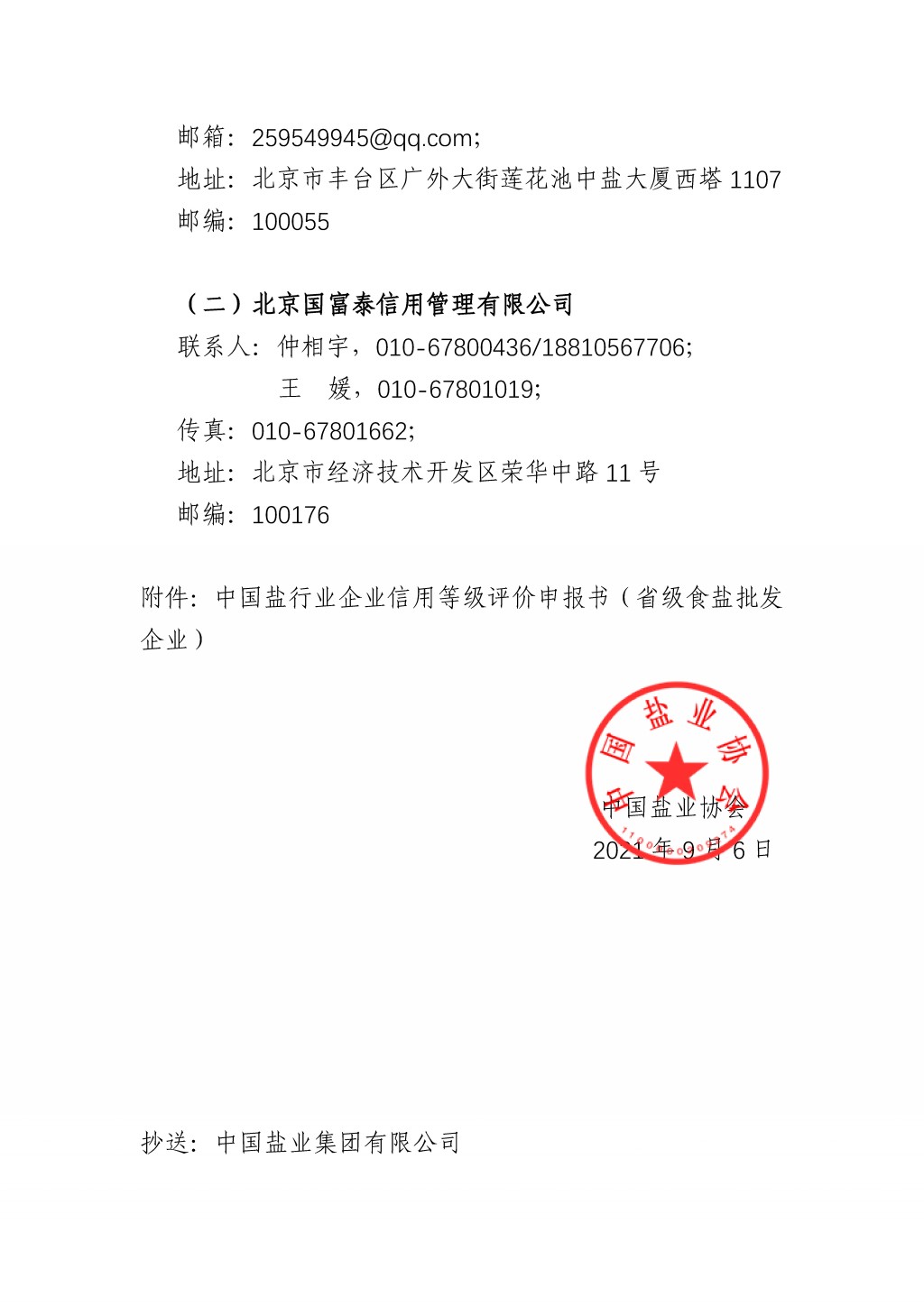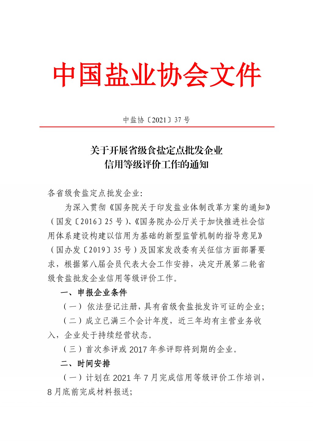 关于开展省级食盐批发企业信用等级评价工作的通知