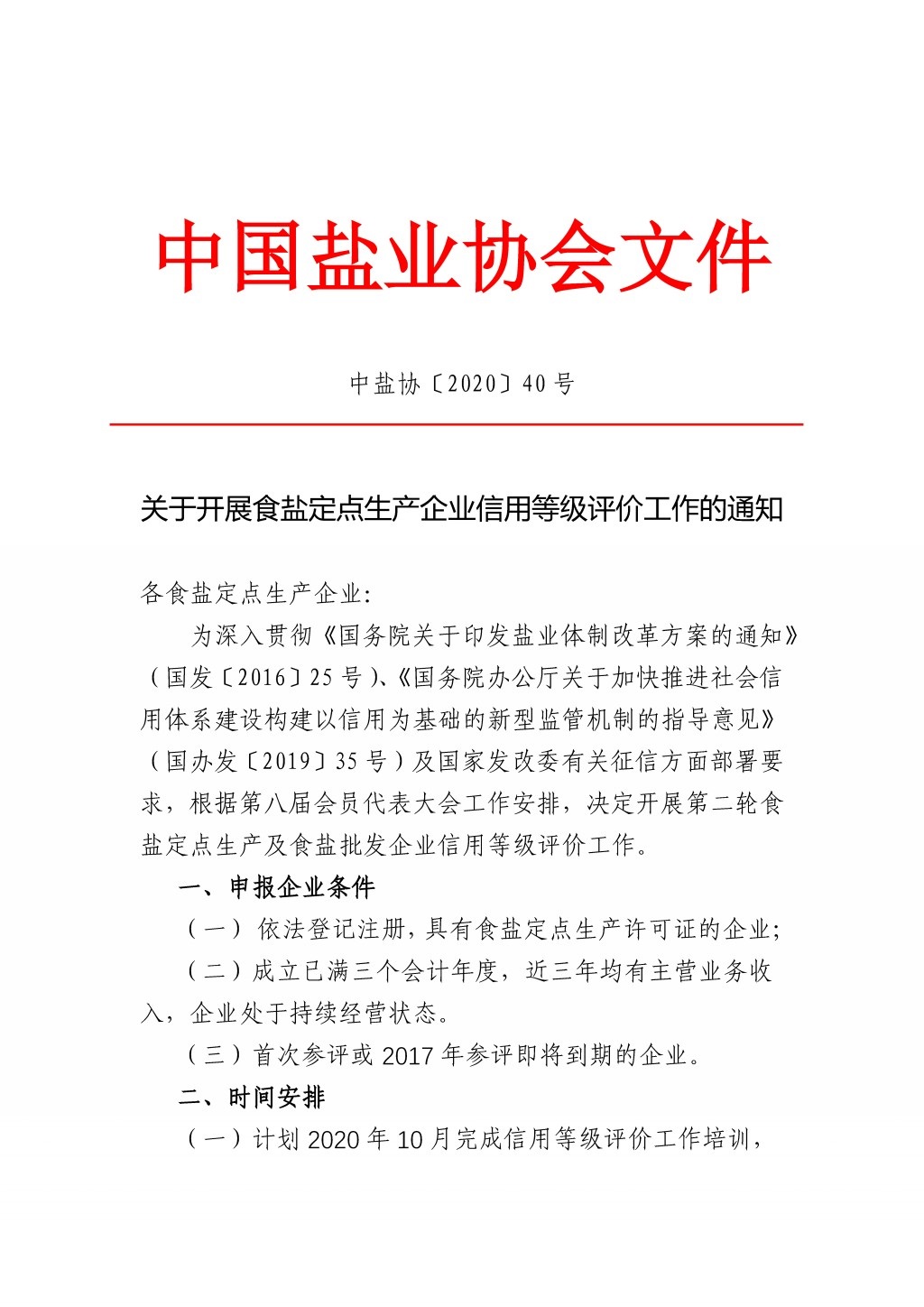 关于开展食盐定点生产企业信用等级评价工作的通知