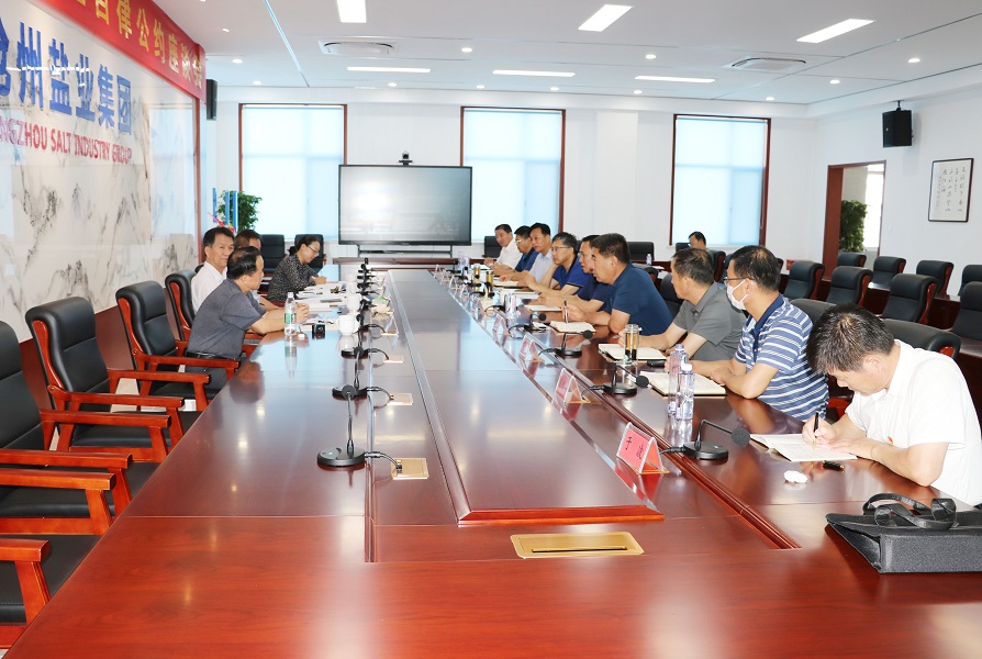 刘建军董事长对调研组一行的到来表示欢迎,他说,作为沧州市政府重点国有企业,沧盐集团以深化管理升级为主线,以壮大基础产业为重点,以实施项目建设推动转型发展为目标,以作风纪律整顿为保障,持续巩固拓展经营管理、产业发展、项目建设等方面的发展成果,不断破解企业发展过程中存在的矛盾和问题。在全力推动传统产业升级改造,使传统产业焕发出新活力的同时,充分发挥区位、港口、交通、土地、产业、政策优势,谋划、推动了浓海水综合利用循环经济、华北进口木材产业园等一批极具发展前景的产业升级转型项目,企业高质量跨越式发展迈出了坚实步伐。