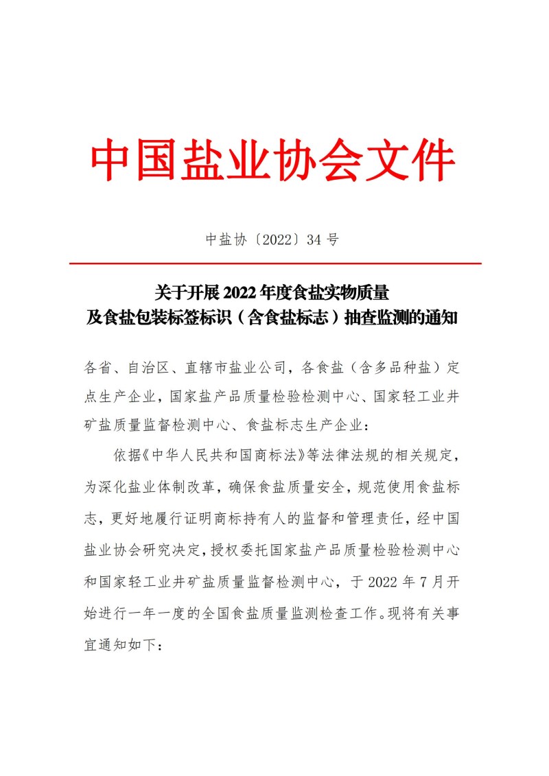 依据《中华人民共和国商标法》等法律法规的相关规定,为深化盐业体制改革,确保食盐质量安全,规范使用食盐标志,更好地履行证明商标持有人的监督和管理责任,经华体会在线客服研究决定,授权委托国家盐产品质量检验检测中心和国家轻工业井矿盐质量监督检测中心,于2022年7月开始进行一年一度的全国食盐质量监测检查工作。