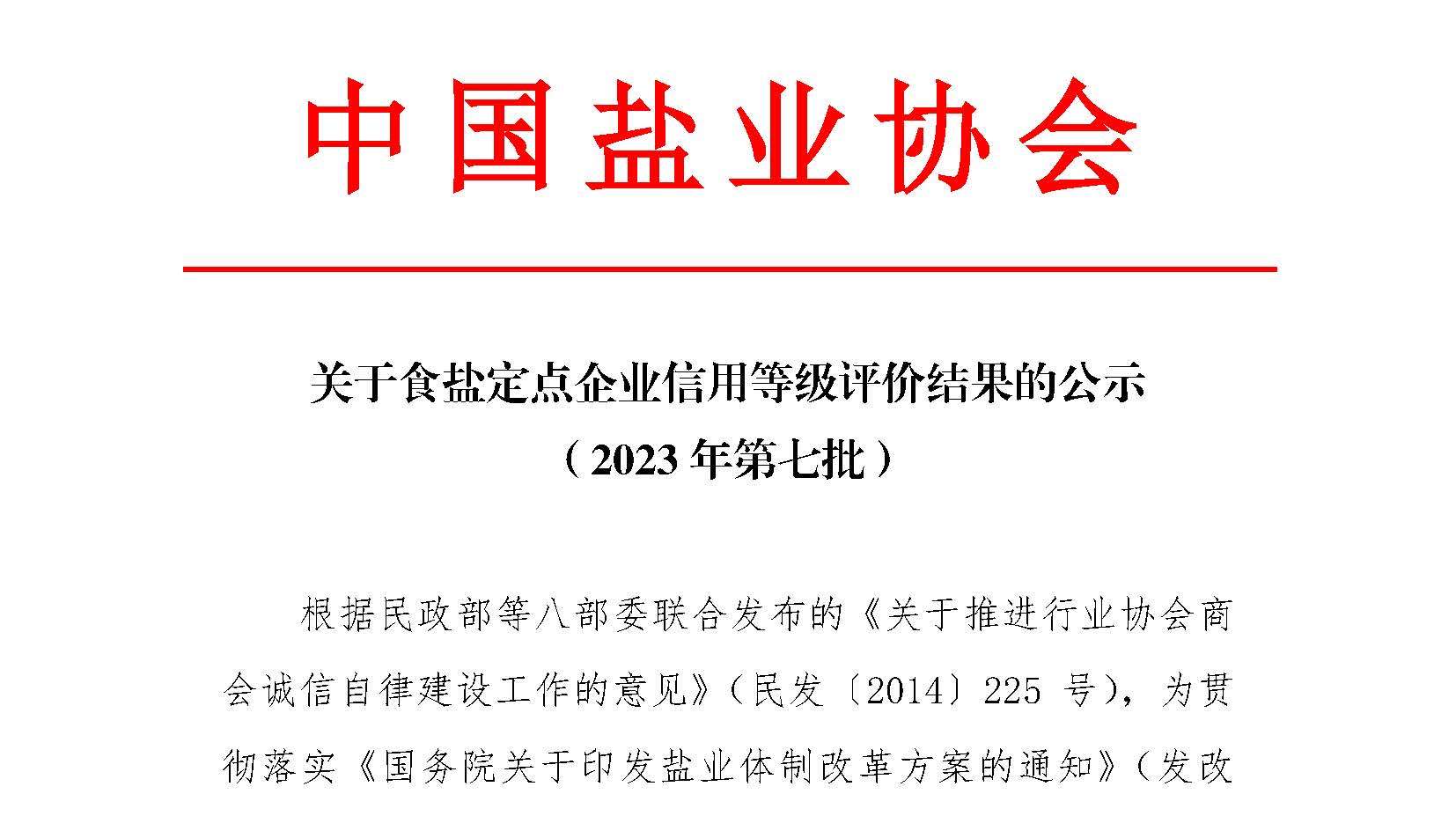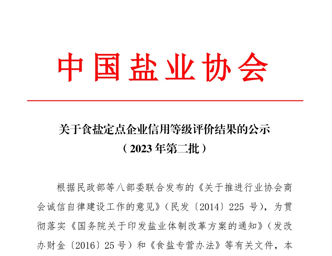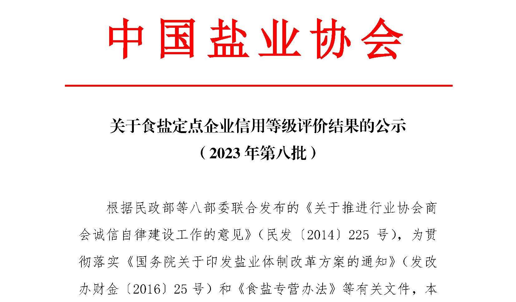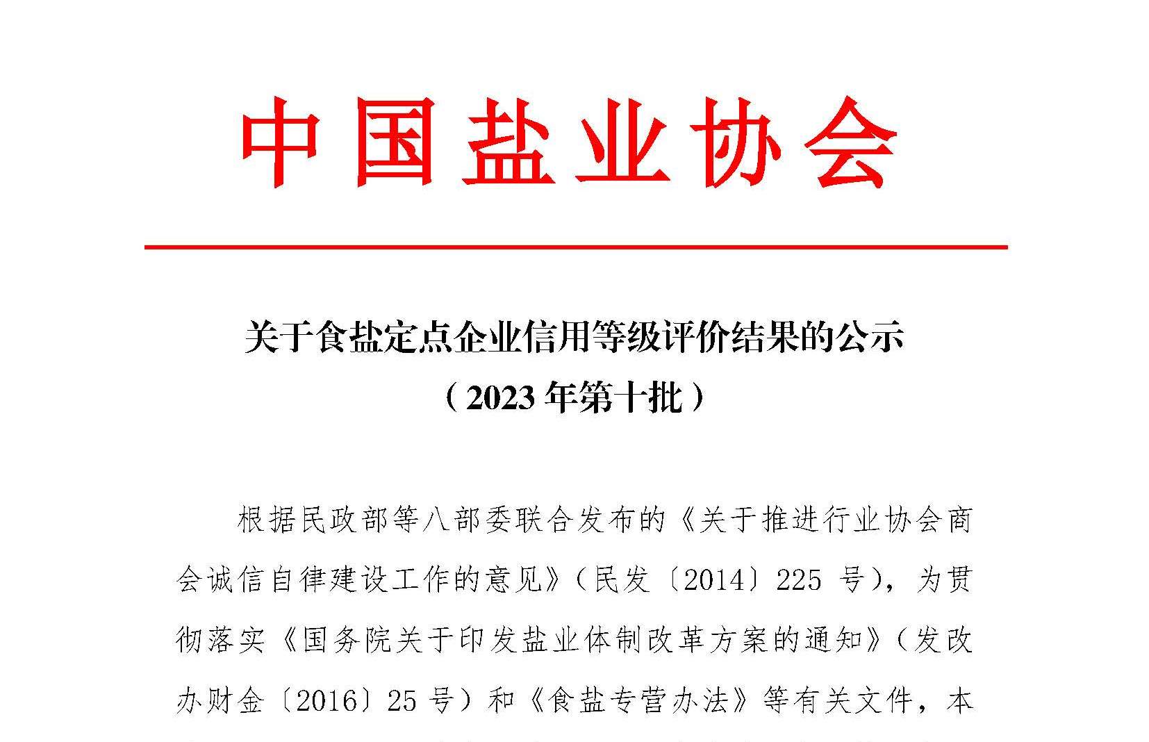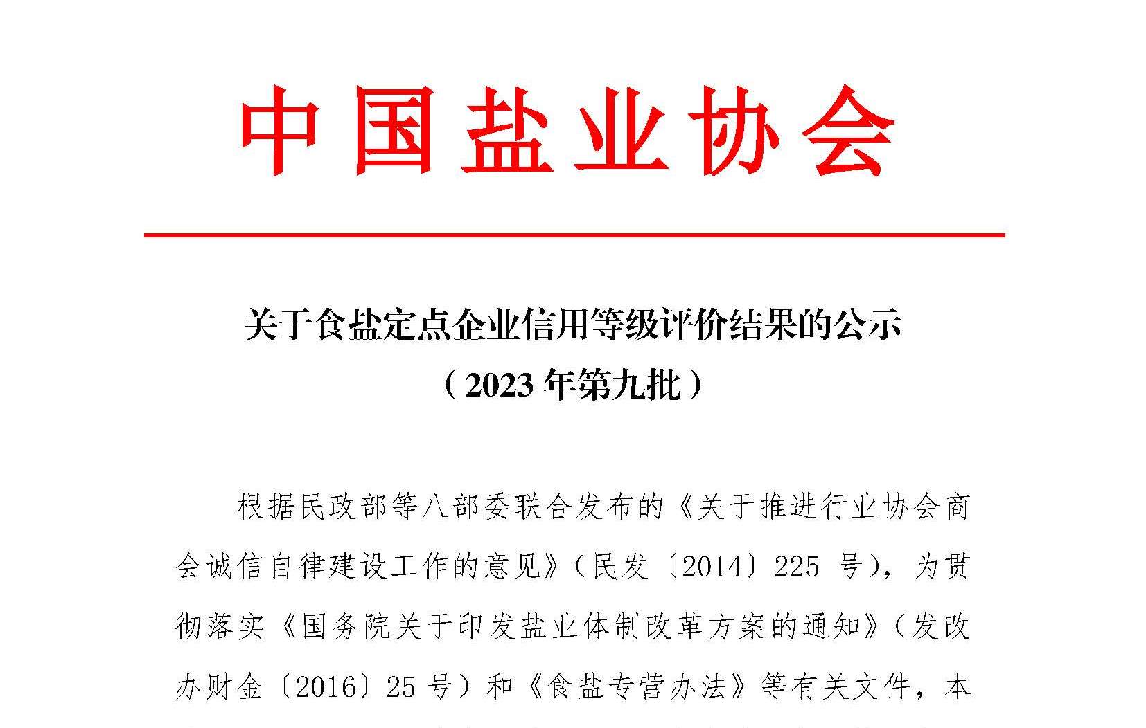 华体会在线客服关于食盐定点企业信用等级评价结果的公示(2023年第八批)