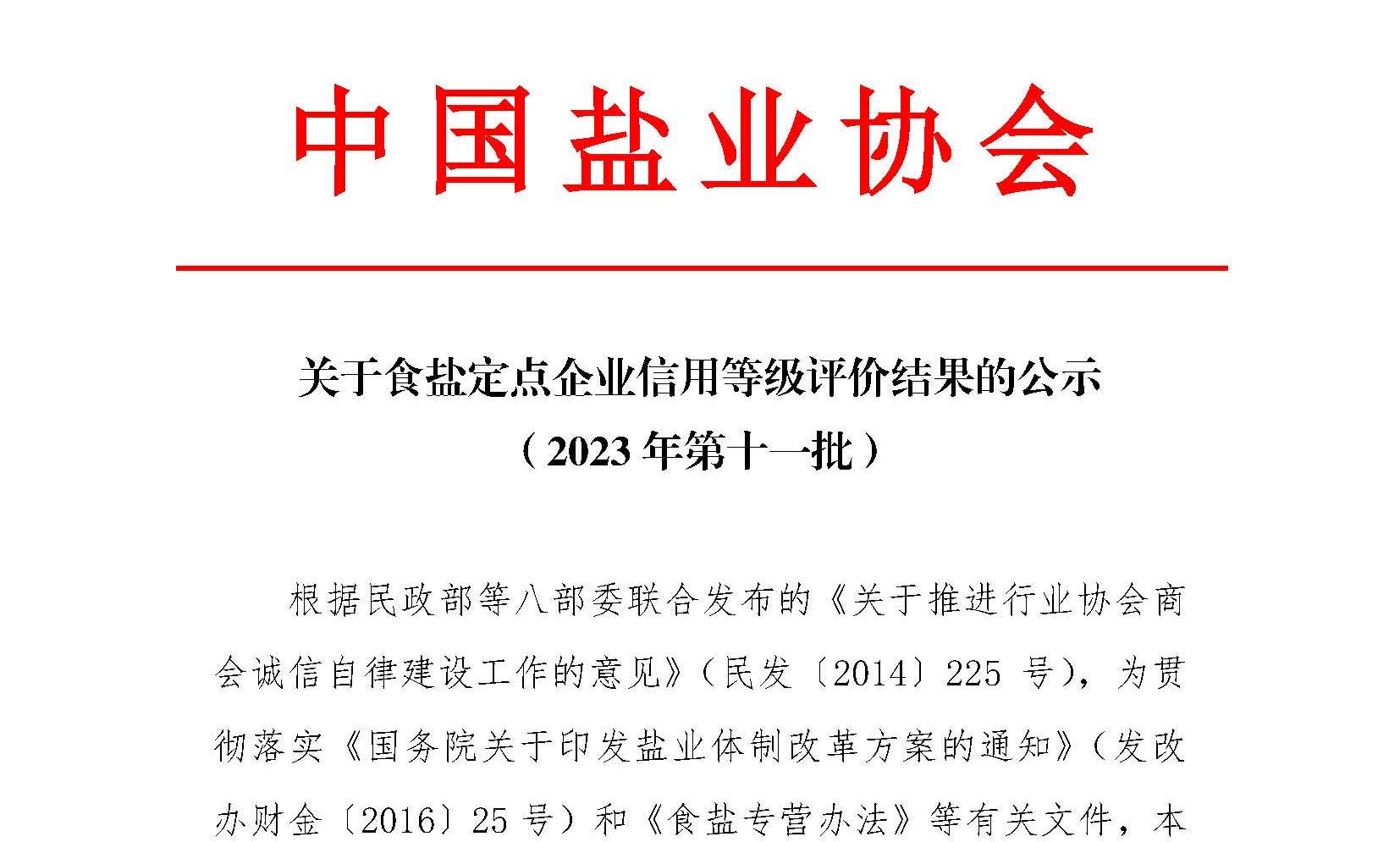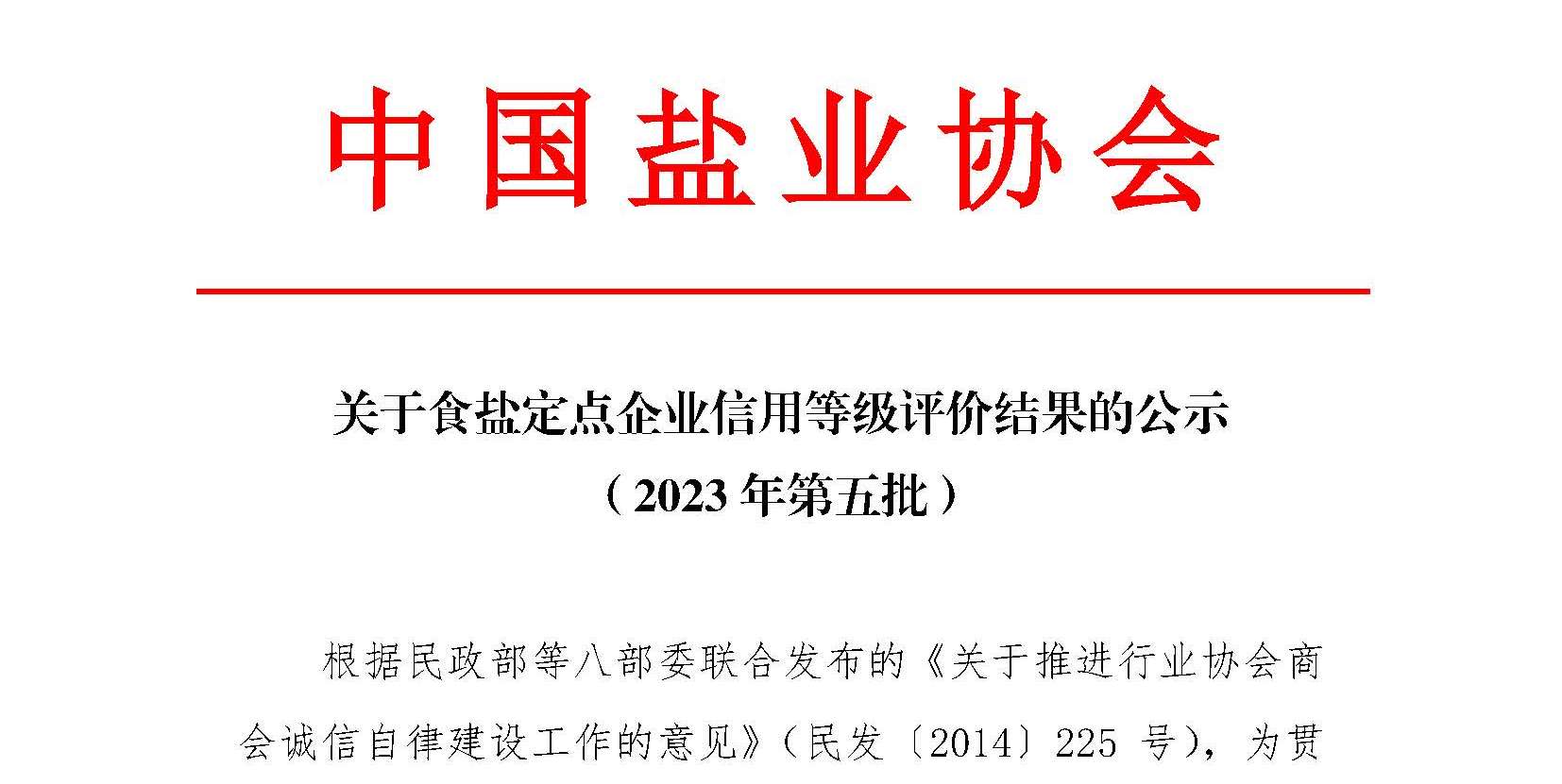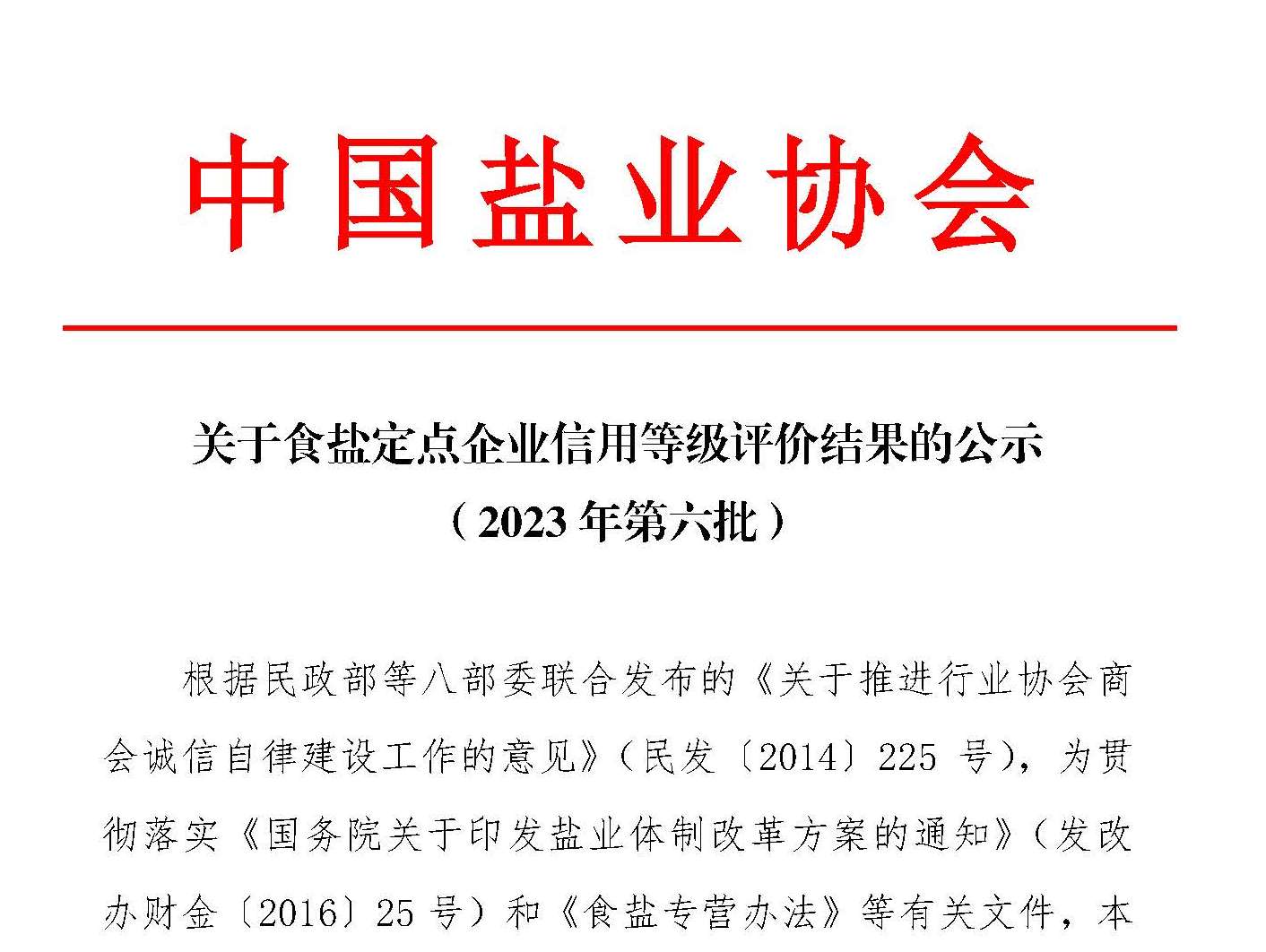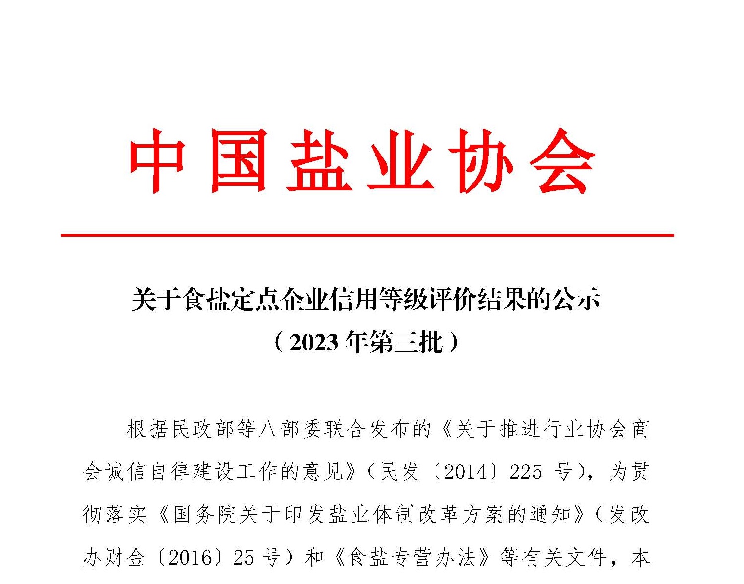 华体会在线客服关于食盐定点企业信用等级评价结果的公示(2023年第八批)